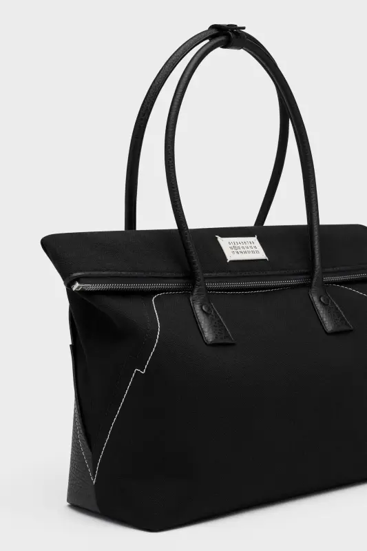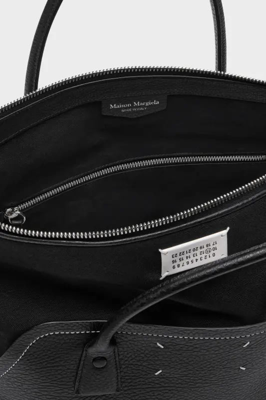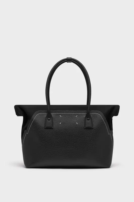 The 5AC shopping medium, crafted from grainy leather, is accented with the logo label on the inner. The iconic 5AC line takes its name from the French word 'sac' (bag). It explores the Maison's Anonymity of the lining concept. The bag's metal rivets are covered in leather by hand, with the metal visible only where needed, for a clean aspect. Artisanal details include the bag's exposed edges hand-painted in tone with the leather.