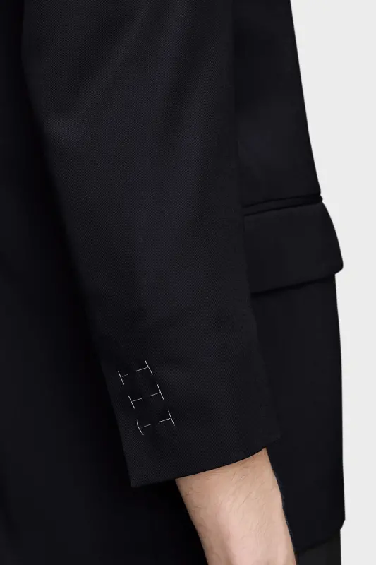 The blazer in British mohair virgin wool features a single-breasted design with chest pocket and two side flap pockets. It has a notched collar, Work-in-progress stitching to the cuffs and a back vent. Maison Margiela's signature, the Four stitches, appear at the back; the opposite of a label.