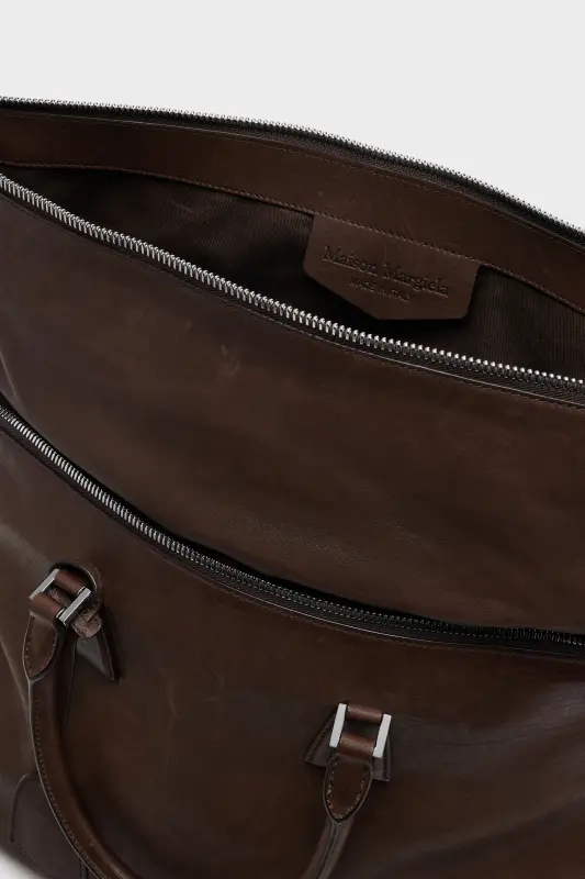 Part of the iconic 5AC line – named after the French word sac (bag) – the Loved to Death XL explores the Maison’s Anonymity of the lining concept. Washed, waxed, and finished by hand, its surface carries visible history – evoking the intimacy of timeworn leather. Sculptural lines, clean hardware, and the exposed top zip add definition. A structured top handle adds practicality, while the Maison's numeric artwork and four stitches reference its signature.