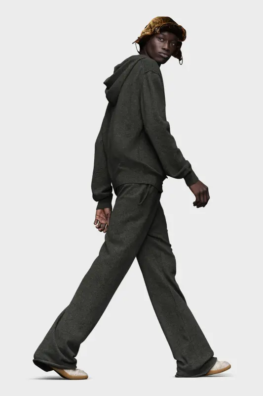 Crafted from a soft cashmere wool bend, the loungewear zip-through hoodie features a Décortiqué front pocket, adding texture and volume to the front of the sweater. It is designed with dropped shoulder seams for a relaxed take, ribbed trims and a drawstring at the neck. Maison Margiela's signature, the four stitches, appear at the back; the opposite of a label.