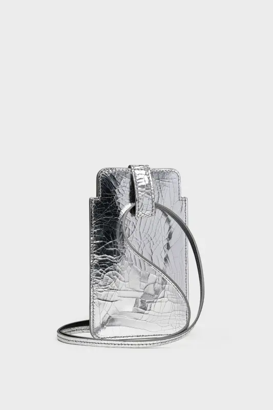 The phone pouch can be worn around the neck and comes crafted in the Maison's broken mirror finish.