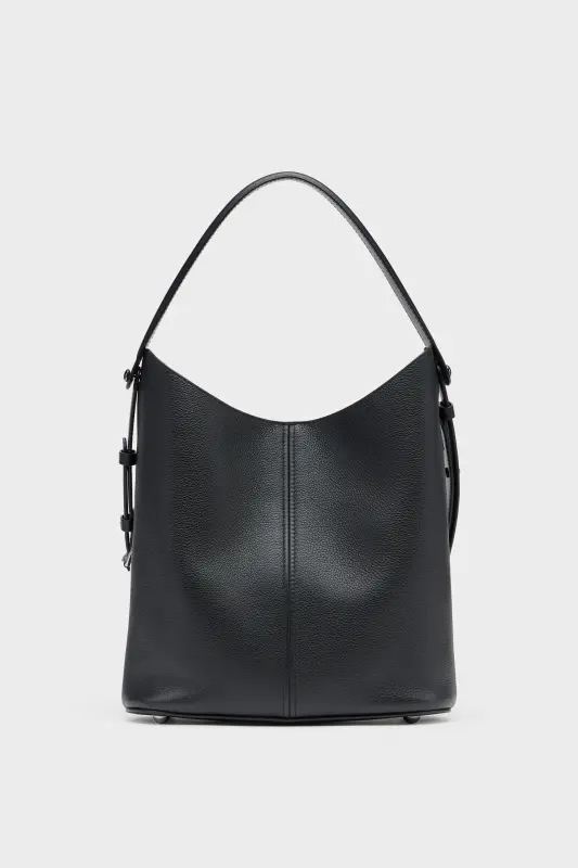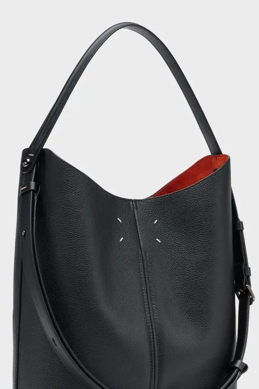 The Maison launches the Dress-age hobo for SS25, crafted from soft pebbled calfskin. With an equestrian spin, the small handbag features classic leatherwork and refined lines, combining unconscious glamour with gestural design. It follows a conical shape with contrast dual-wear strap detail. The studded base allows the bag to stand, and the inner is adorned with the logo. Maison Margiela's signature, the four stitches, appear at the back; the opposite of a label.