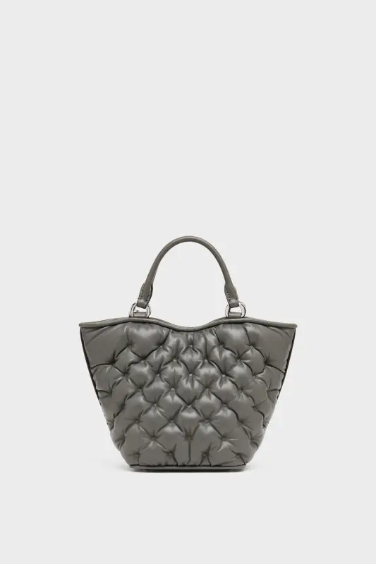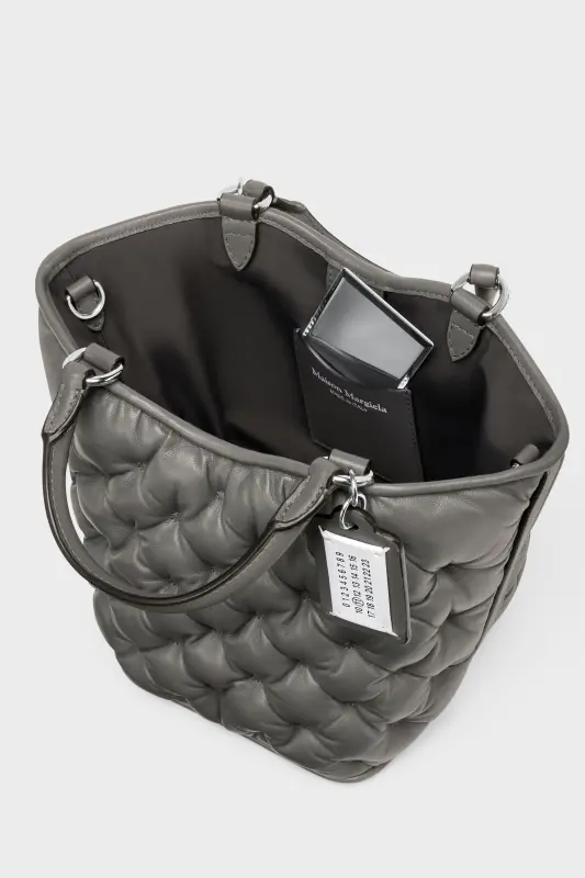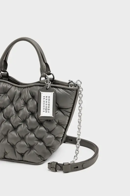 Maison Margiela Gray Leather Glam Slam Embroidery Tote Bag Mini Pebble grey