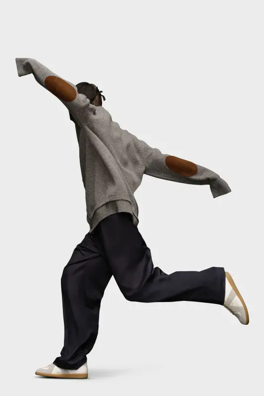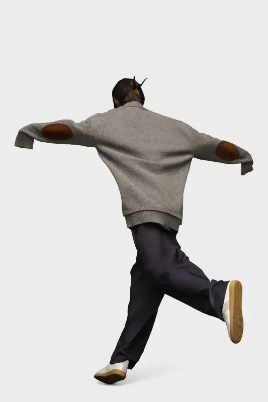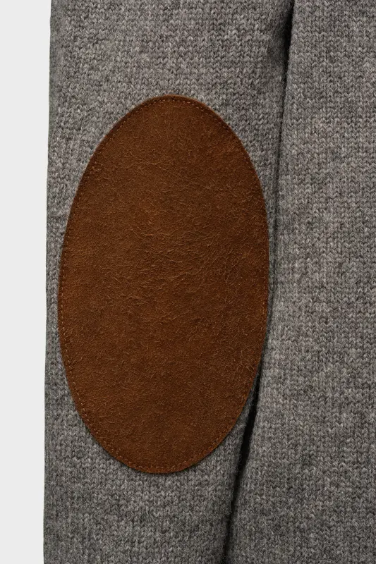 This low V-neck knit cardigan with long sleeves and ribbed trims features tonal elbow patches. At the back, four white stitches show the hand of the Maison: the opposite of a label. Gauge 5.