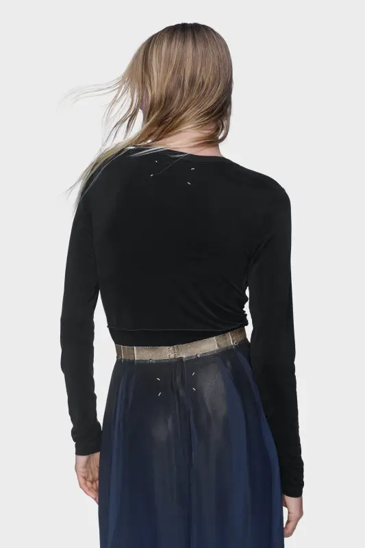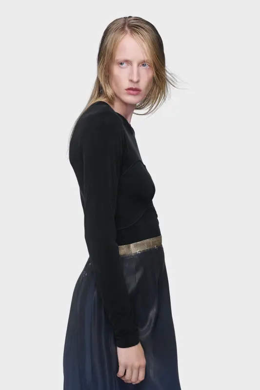 Subversive in its simplicity, this long-sleeve T-shirt is detailed with stitched contouring that recalls corsetry. The graphic lines distort an otherwise minimal silhouette, reflecting the Maison’s deconstructive ethos. At the back, the Maison’s signature four stitches appear; the opposite of a label.