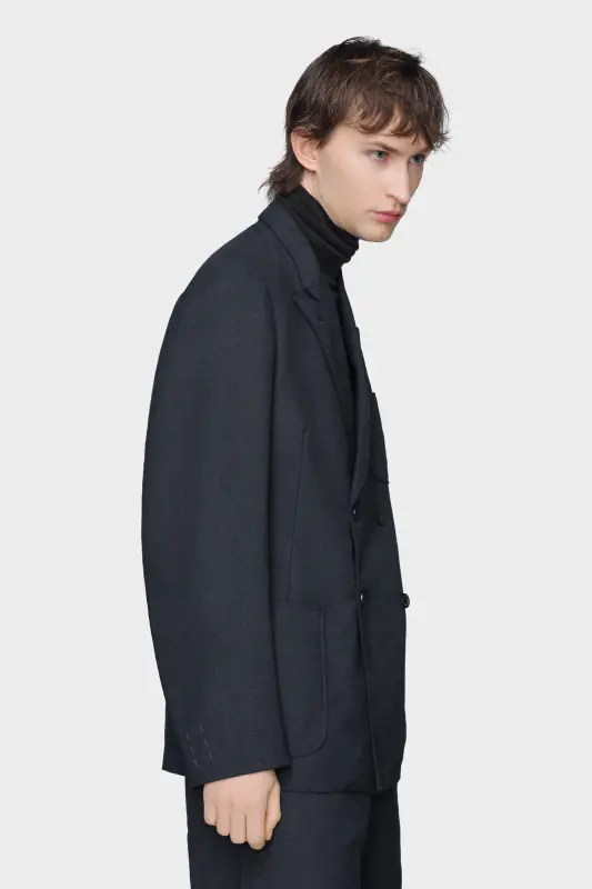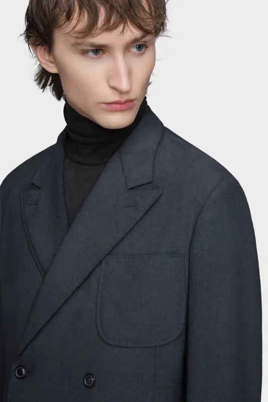 Featuring a chest pocket and deep welt pockets at the sides, this double-breasted blazer is cut with soft lines and a notched lapel. Treated with a sunfaded technique, the piece carries a lived-in nuance that tempers its tailored structure. Maison Margiela’s signature, the four stitches, appear at the back; the opposite of a label.