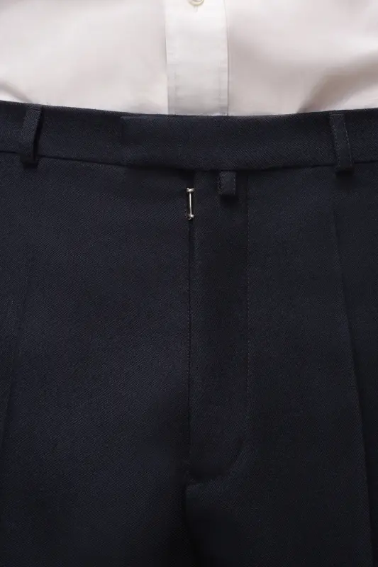 Maison Margiela Navy Wool Twill Pleated Pants Navy Blue