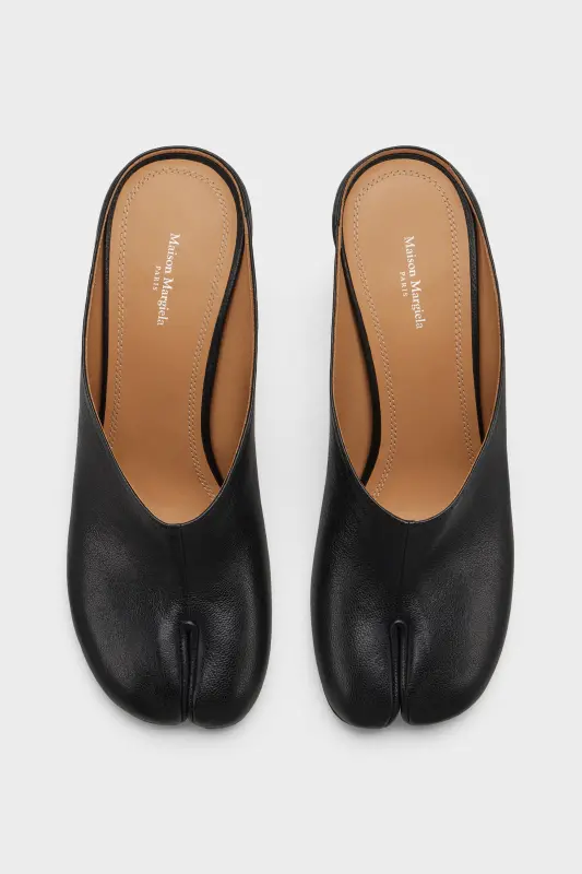 Crafted from soft nappa leather, this Tabi décolleté mule rests on a cylindrical heel, merging refinement with subversive design. They feature the Tabi split-toe, inspired by the traditional 15th century Japanese sock bearing the same name – launched for the Maison's debut collection in 1989. It captures the avant-garde and insubordinate spirit of the Maison and exists as a heritage classic, continually explored through each collection. Maison Margiela's signature single white stitch appears at the back.