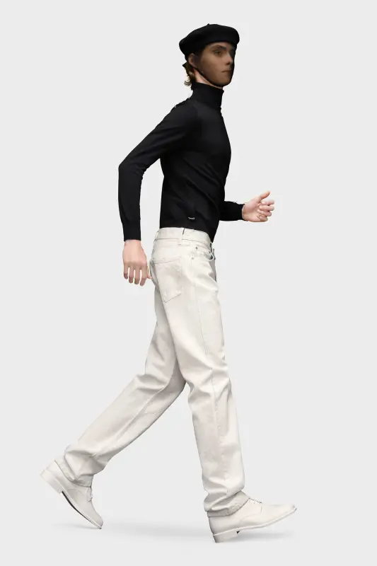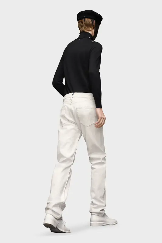 With classic five-pocket styling, these straight-leg jeans feature the four stitches at the back, showing the hand of the Maison: the opposite of a label.